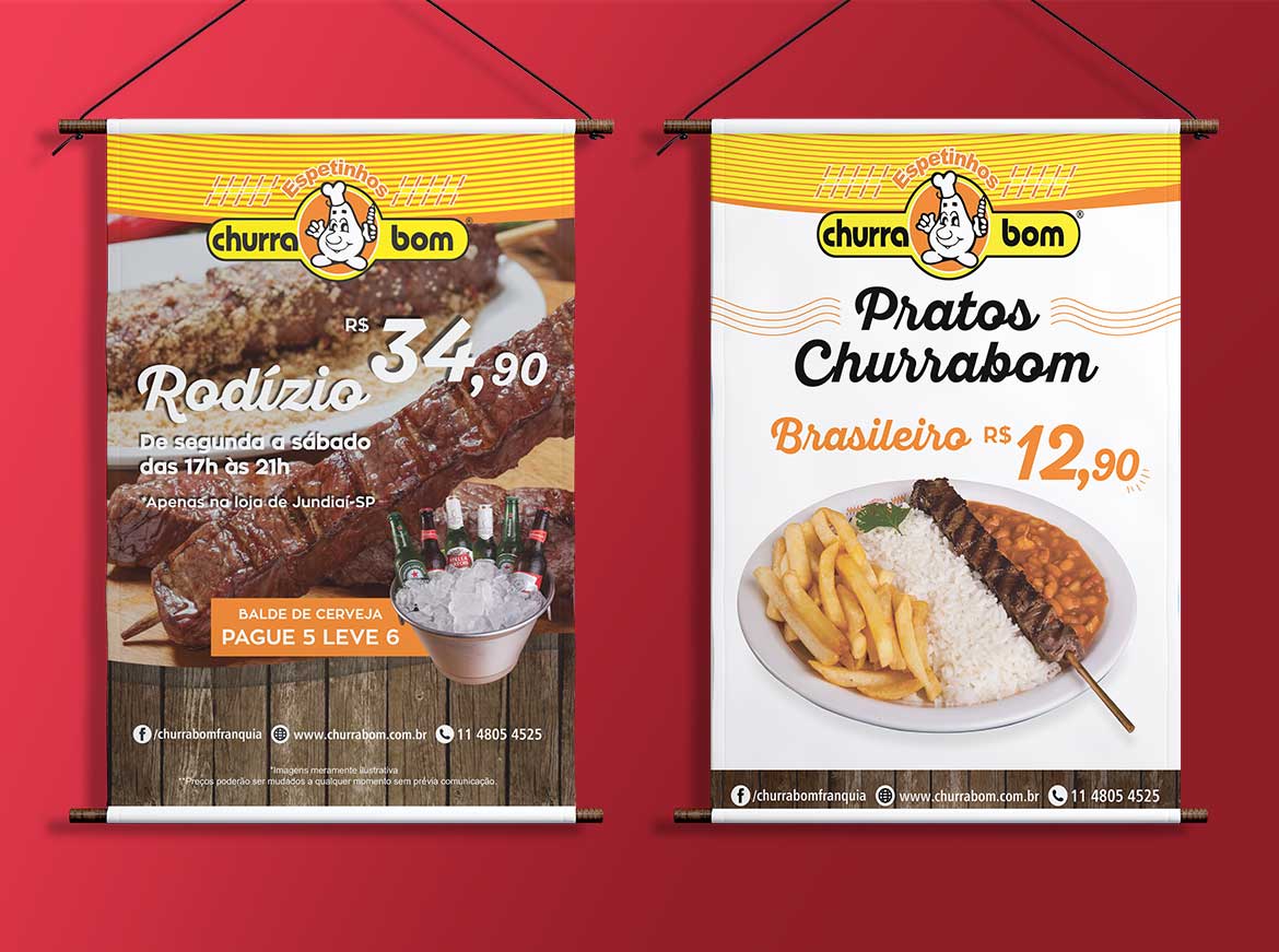 A Espetinho Churrabom começou como um frigorifico, expandiu para um buffet e em seguida virou um restaurante com modelo de franquia para empreendedores. O frigorifico ainda opera produzindo distribuindo espetinhos de carne. Algumas lojas da franquia funcionam tanto como distribuidora quanto restaurante.